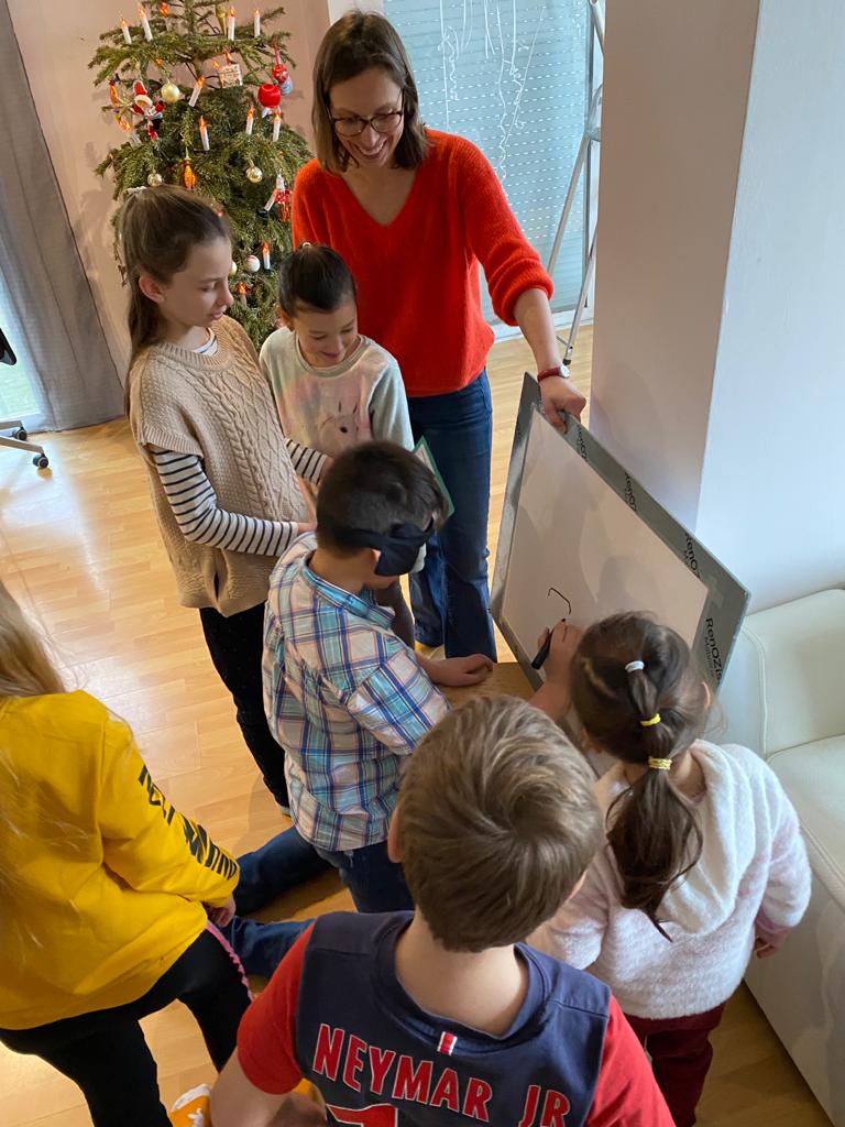 Jeu d’évasion « Sept portes d’Uruk » basé sur les œuvres étudiées courant le premier semestre. Sur cette photo les participants dessinent , collectivement et les yeux bandés, un taureau ailé.