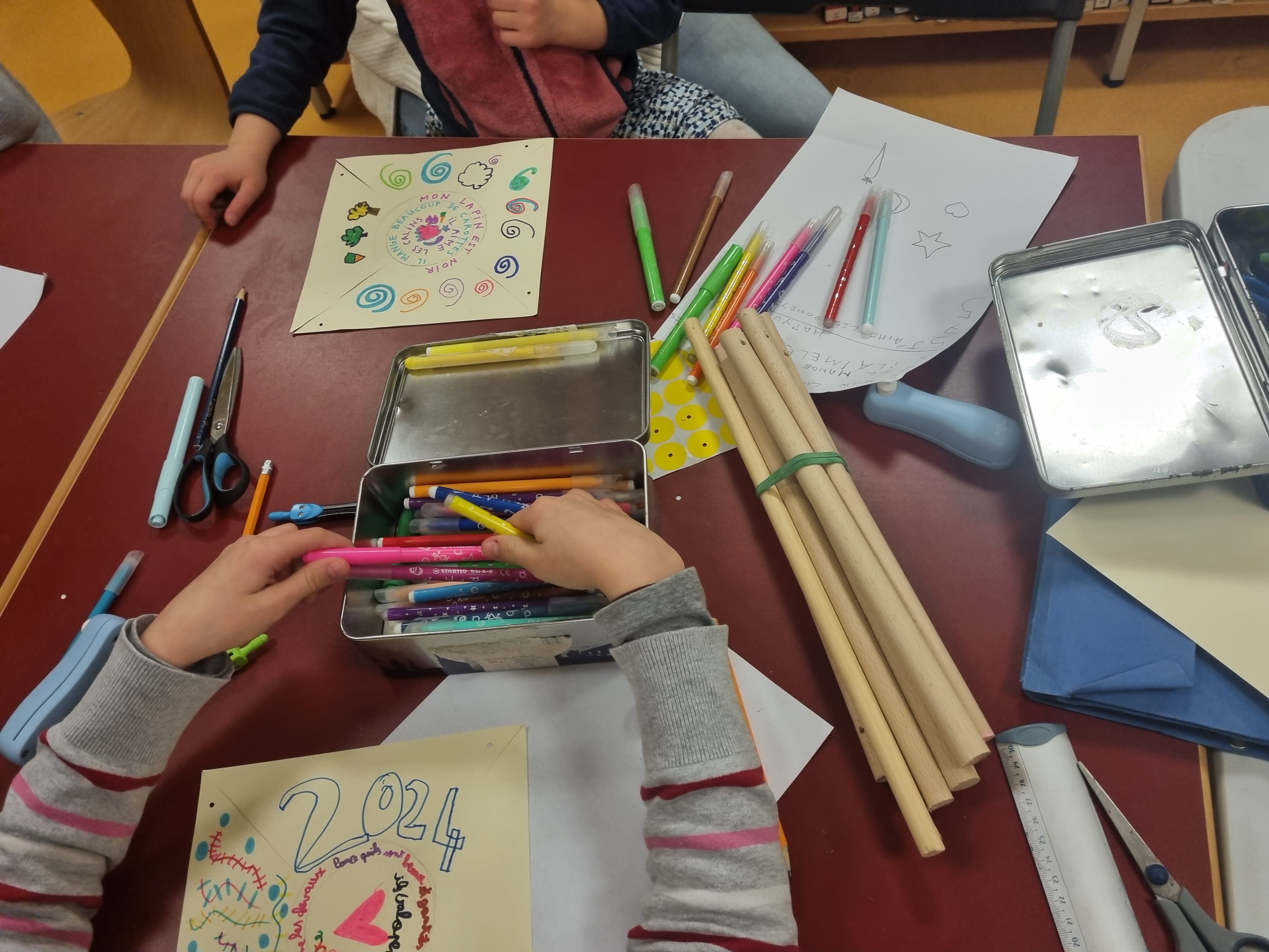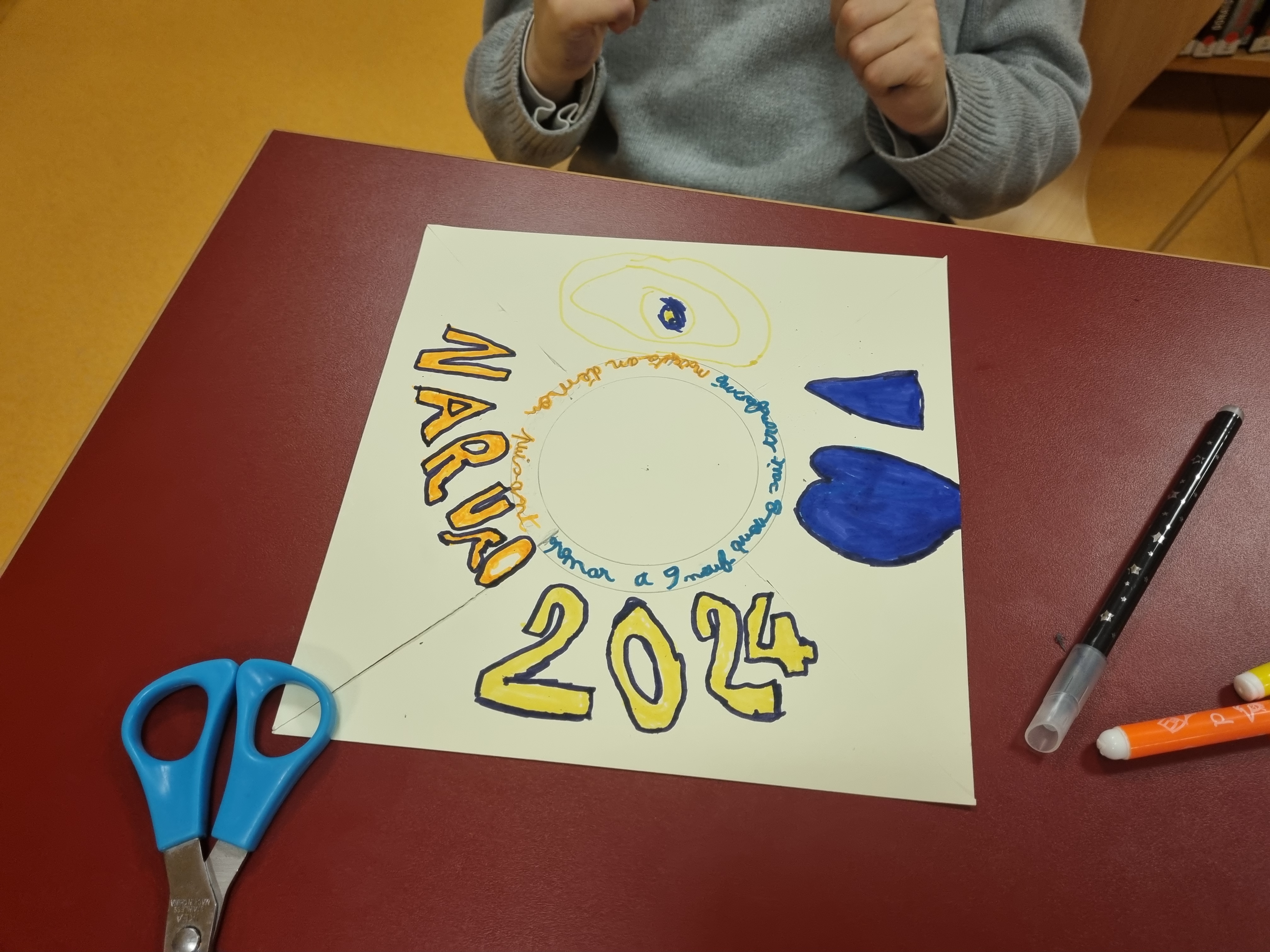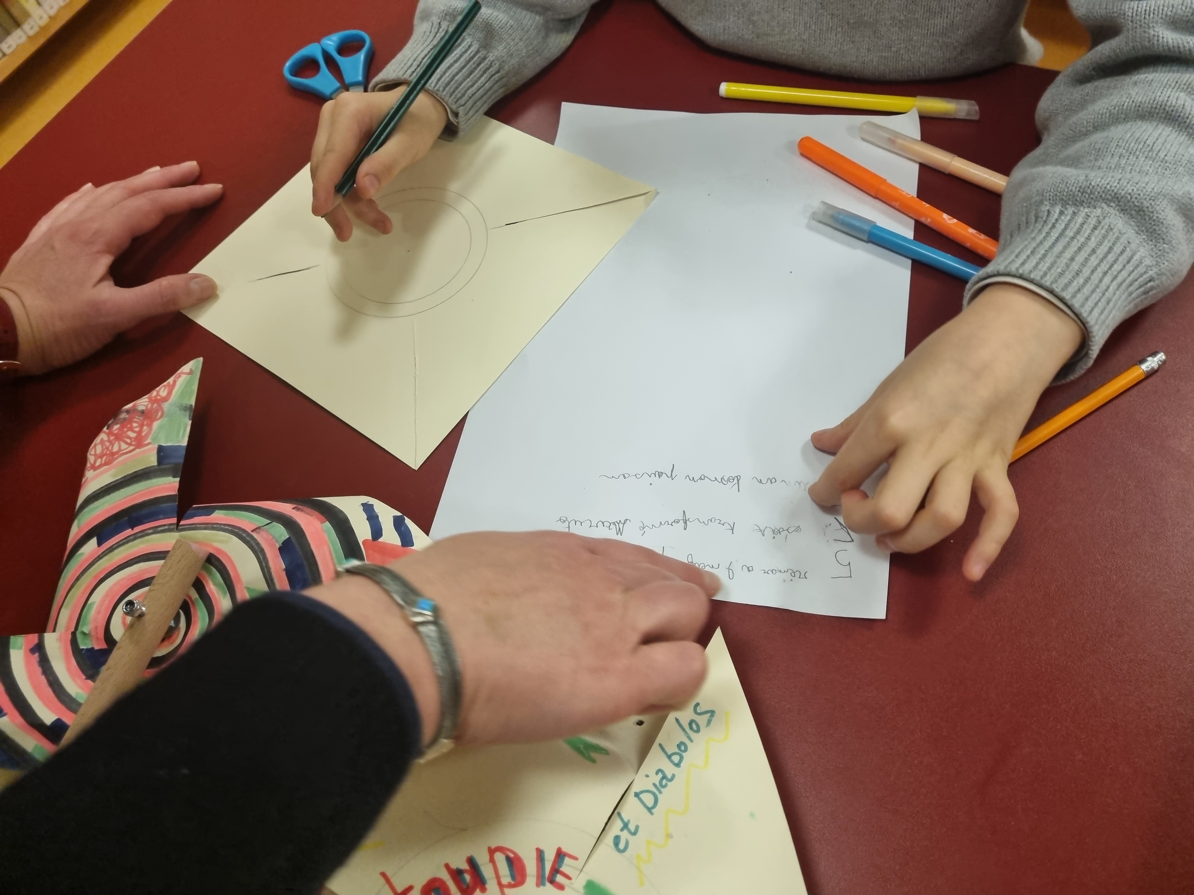 Atelier « Moulins à mots » : rédiger un haïku (俳句), puis l’écrire sur la future hélice, ensuite décorer et monter l’hélice.